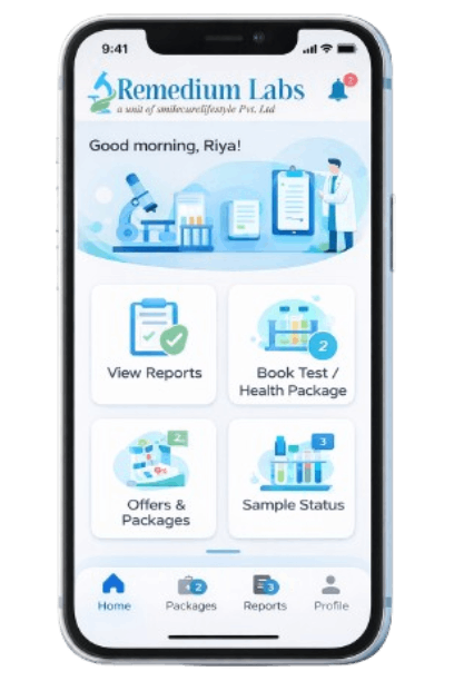 Access reports, test information, health packages, and updates easily through the Remedium Labs mobile app. Designed for convenience, transparency, and faster access to your diagnostic journey.